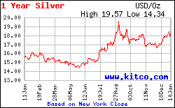 Historique du cours de l'argent métal sur 1 année