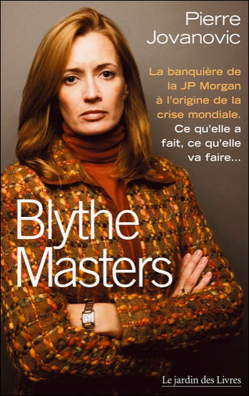 « Avec d’autres mathématiciens de la JP Morgan Bank, l’anglaise Blythe Masters a mis au point la formule magique qui a transformé le papier en or et qui a rendu les banquiers complètement fous. Inconnue du public, Blythe Masters est pourtant, selon la formule consacrée du Guardian de Londres »La femme qui a inventé les armes financières de destruction massive », armes qui ont, selon Newsweek »libéré un monstre » qui est toujours en train de détruire progressivement l’économie mondiale, jusqu’à l’inévitable banqueroute universelle. La banquière de la JP Morgan qui a déclenché la crise économique mondiale en inventant les « credits default swaps » qui ont ruiné les banques.